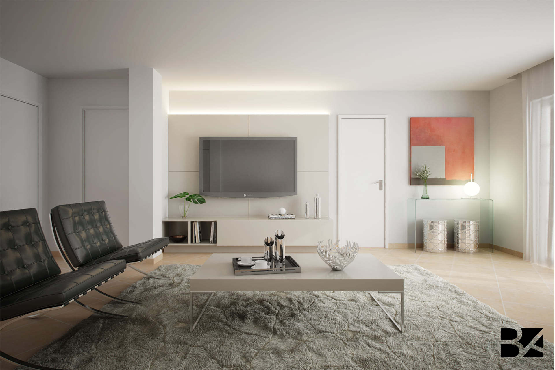 This living space channels the breezy elegance of Sydney, blending comfort and style with an artistic touch. The L-shaped sofa, adorned with colorful cushions, invites conversation, while the plush rug and metallic accents add texture and refinement. Artwork featuring birds and touches of natural greenery reflect the city’s harmony between urban life and nature.